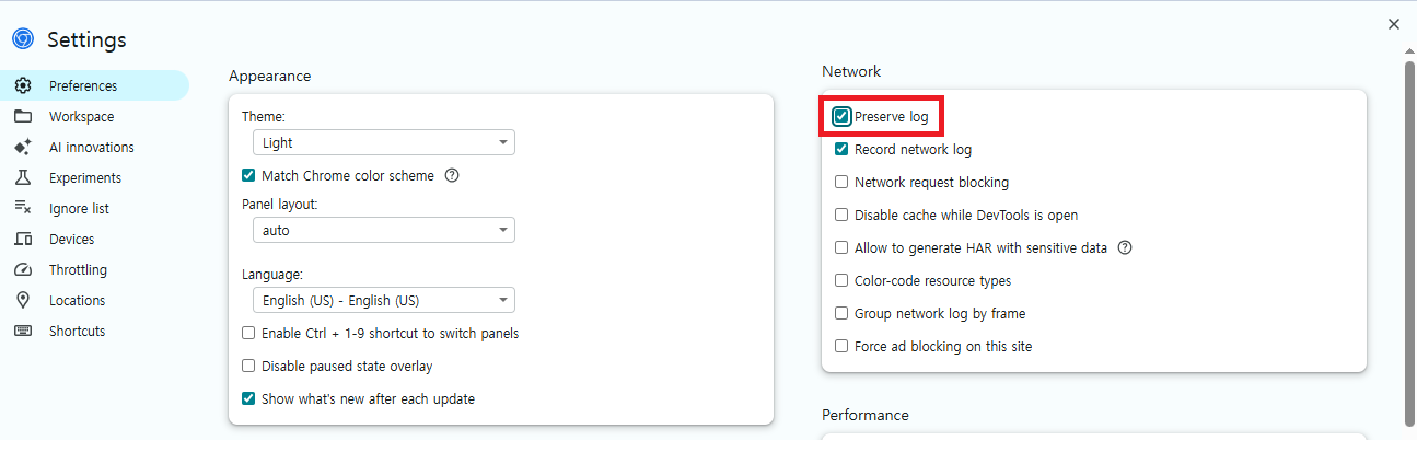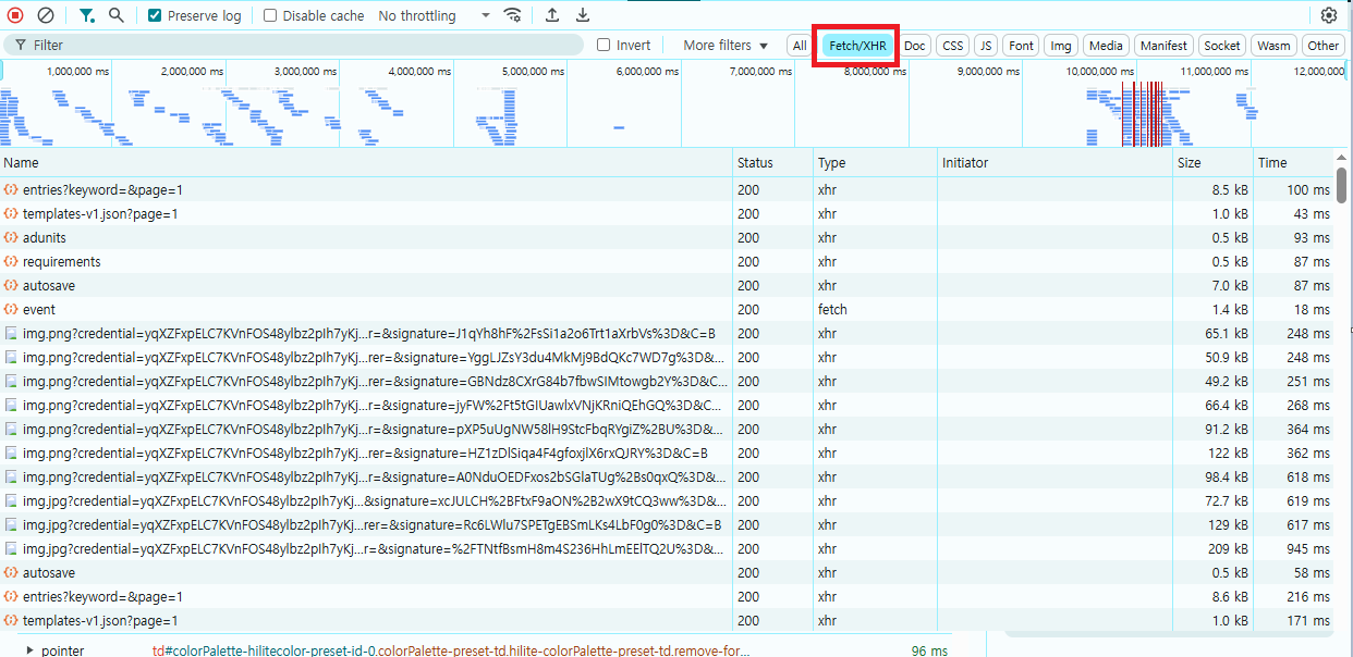 Preserve log를 사용하면 개발 중 웹페이지가 refresh 되거나 다른 페이지로 이동해도 기록된 로그 내용이 사라지는 걸 방지할 수 있다.