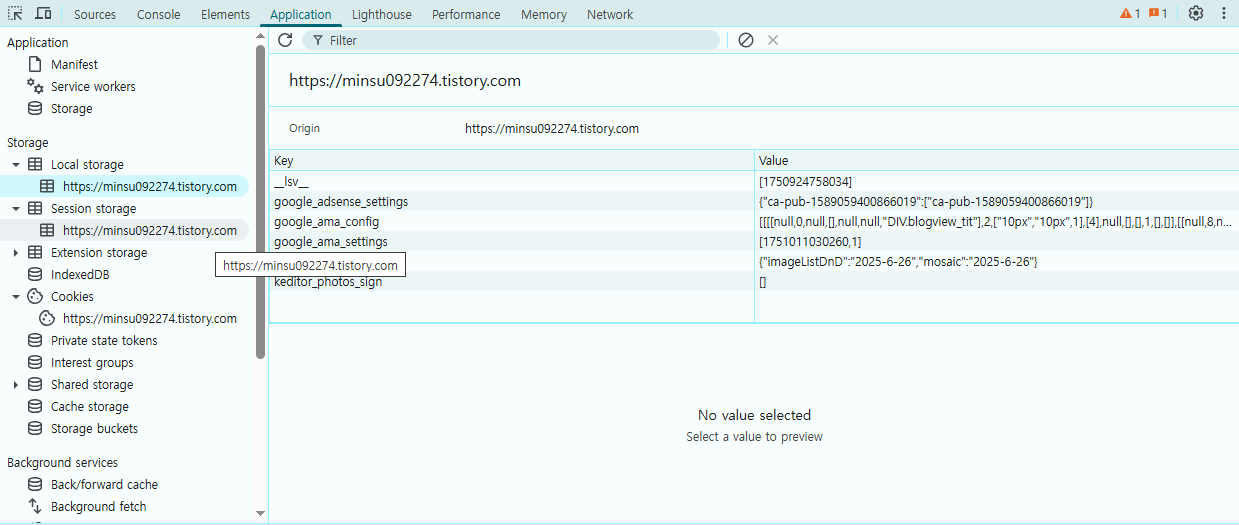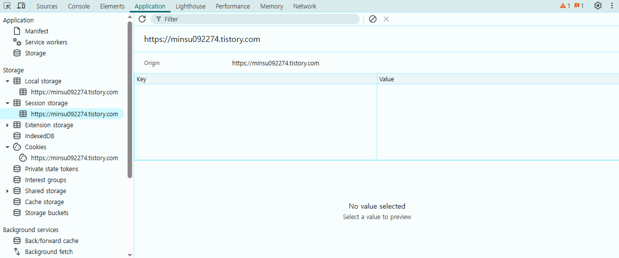 Application 메뉴는 웹 애플리케이션이 클라이언트 측(브라우저)에 저장하는 데이터 및 자원을 확인하고 관리할 수 있는 메뉴이다.