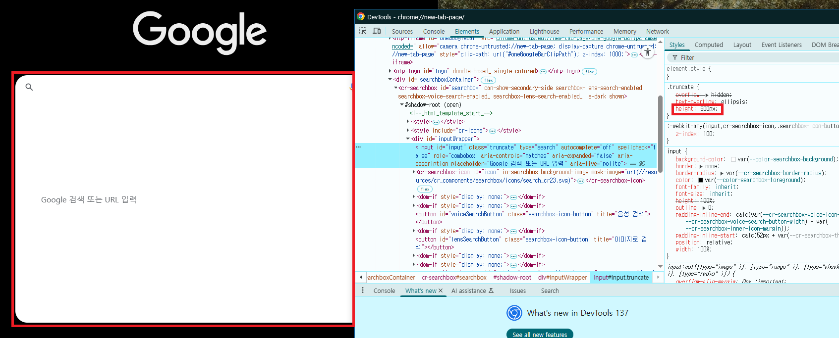 위 그림은 구글 검색창에 height 500px를 적용해 본 예시이다.