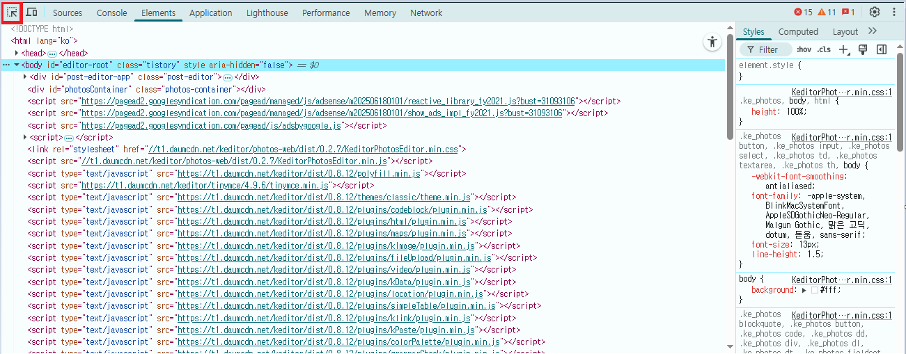 📌 HTML , CSS 확인 & 스타일 검사 및 편집 가능