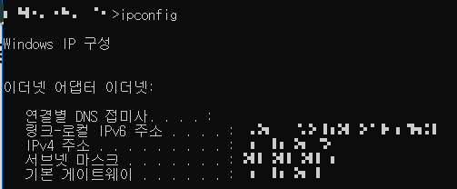 - cmd에 ipconfig를 입력하는 방법(내부 IP 확인)
