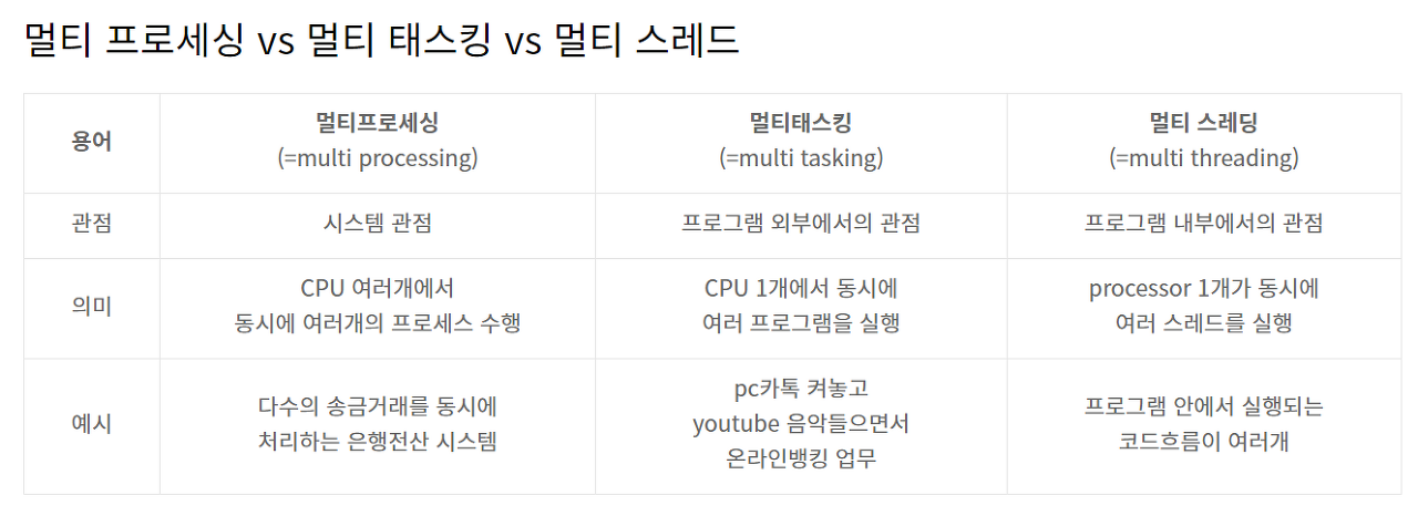 멀티 태스킹이란 두 가지 이상의 작업을 동시에 처리하는 것을 말한다.