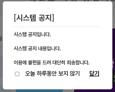 <h4>시스템 공지 내용입니다.</h4>