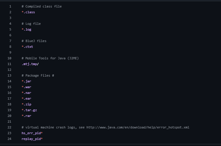 만들어진 .gitignore 파일을 확인하면 이렇다. (예 java)
