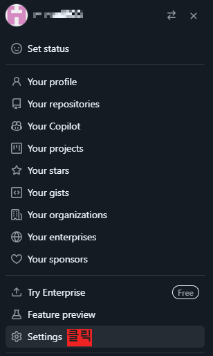 settings -> 좌측 메뉴 중 맨 아래 Developer settings -> Personal access tokens -> Tokens(classic) 클릭