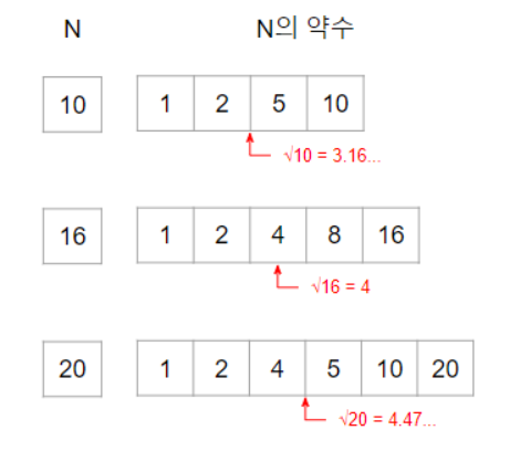 for문을 √N까지 구하면 약수 절반의 개수를 구할 수 있다는 걸 알 수 있다.